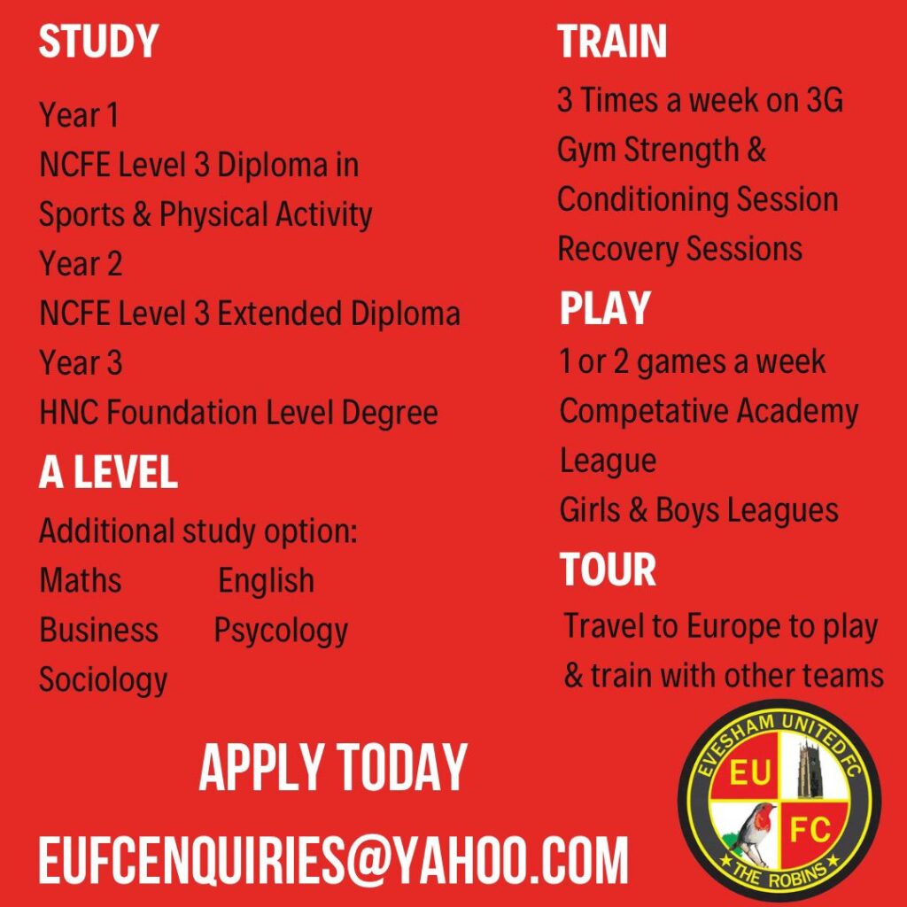 We are looking for talented footballers to join our academy programme, 16-19 years, boys and girls.